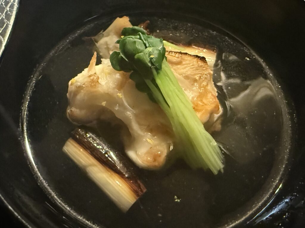ふぐお椀物 2025年11月29日季節のおすすめrobin-kyoto こんにちは。 本日は皆様がお好きなとらふぐ アラを備長炭で焼いて潮仕立て 仕上げは焼きねぎと柚子 冬の美味しい食材が揃いだしております。 是非お楽しみください。