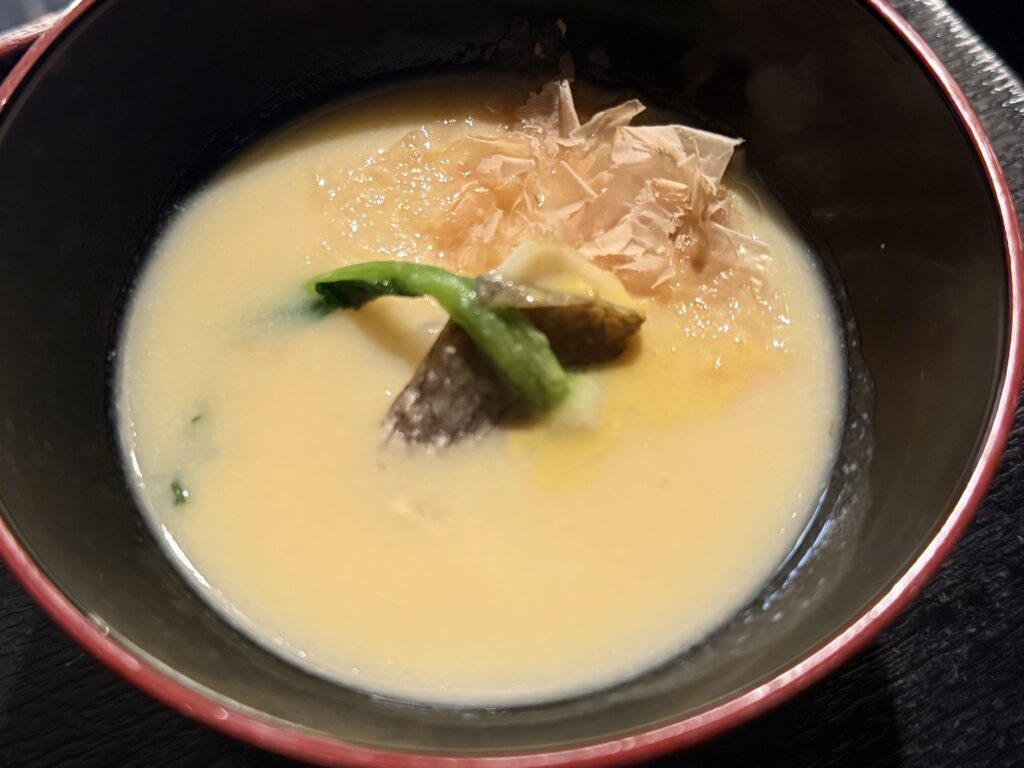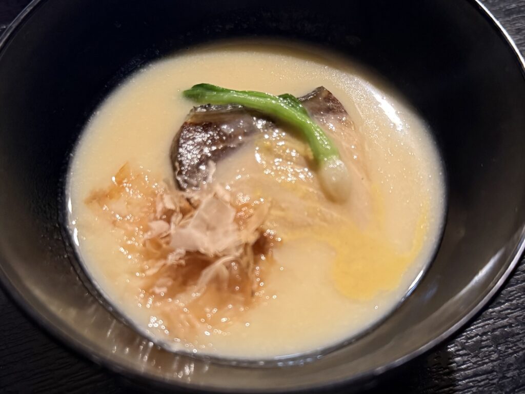 本日はお正月のお椀物 白味噌 辛子 塩ぶりのお椀