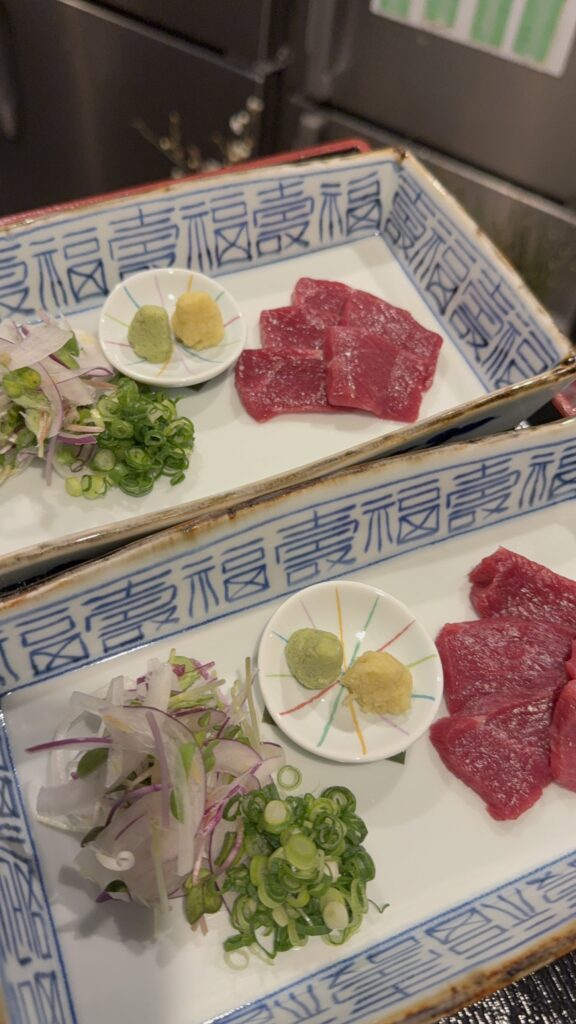 馬刺し 2026年2月8日季節のおすすめrobin-kyoto Tweet こんにちは。 本日は九州から馬肉の上赤身が入荷です。 程よく脂もありきれいな桜肉 甘醤油で生姜とおねぎを巻いてお楽しみください。
