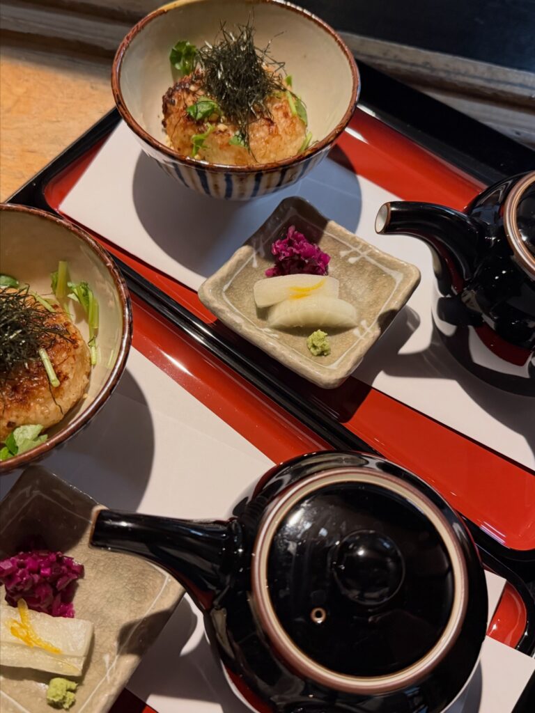 熱々のお出汁を香ばしく焼き上げた蟹の香りの焼きおにぎり